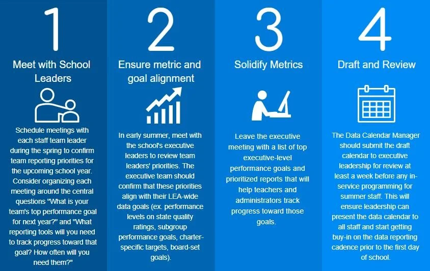 One way to overcome these challenges and ensure that instructional staff have the information they need to make sound decisions is to create a shared data calendar.