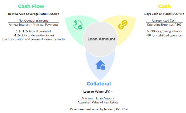 If your project requires financing, understand the key financial metrics lenders will use to assess your school's health and size a loan.